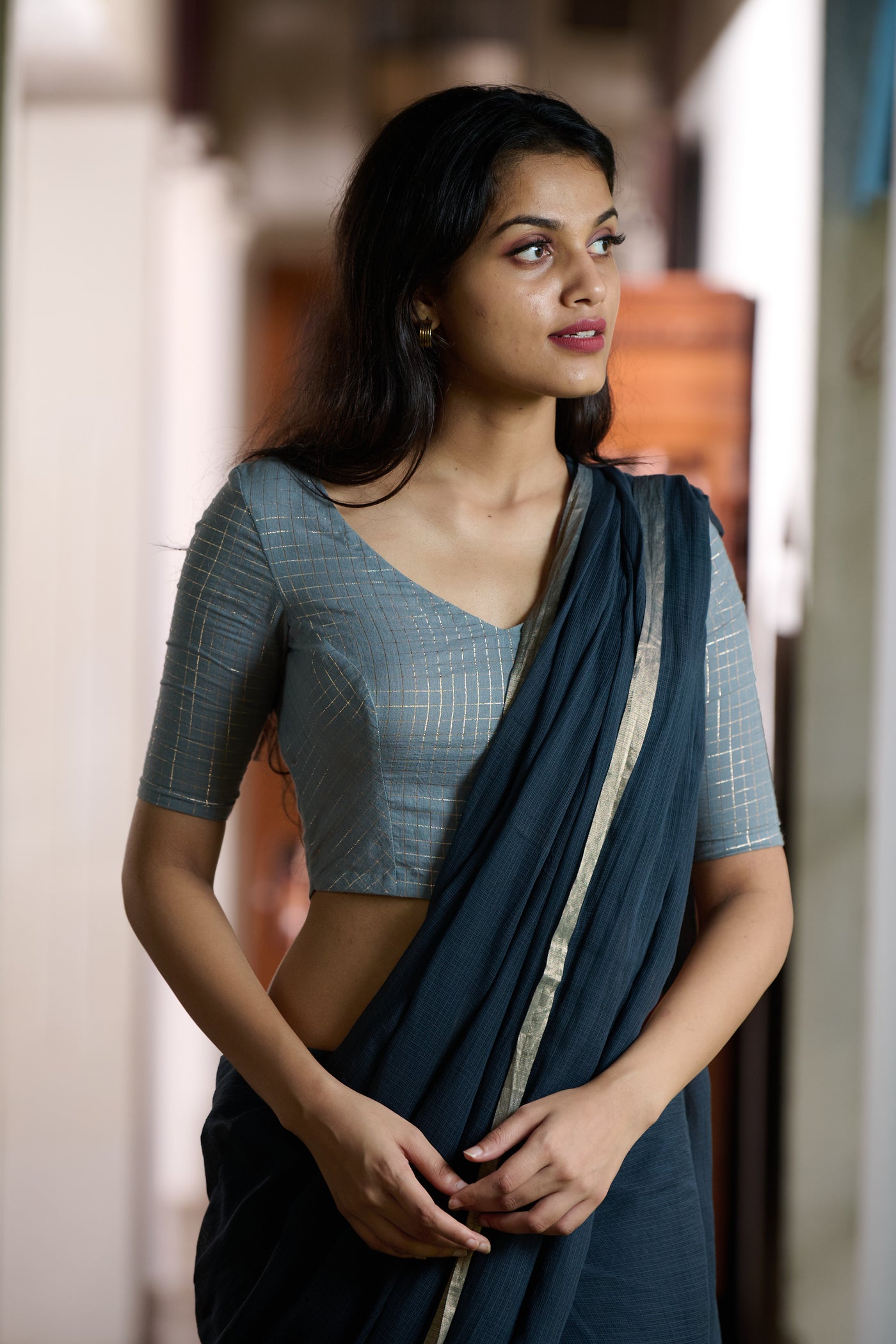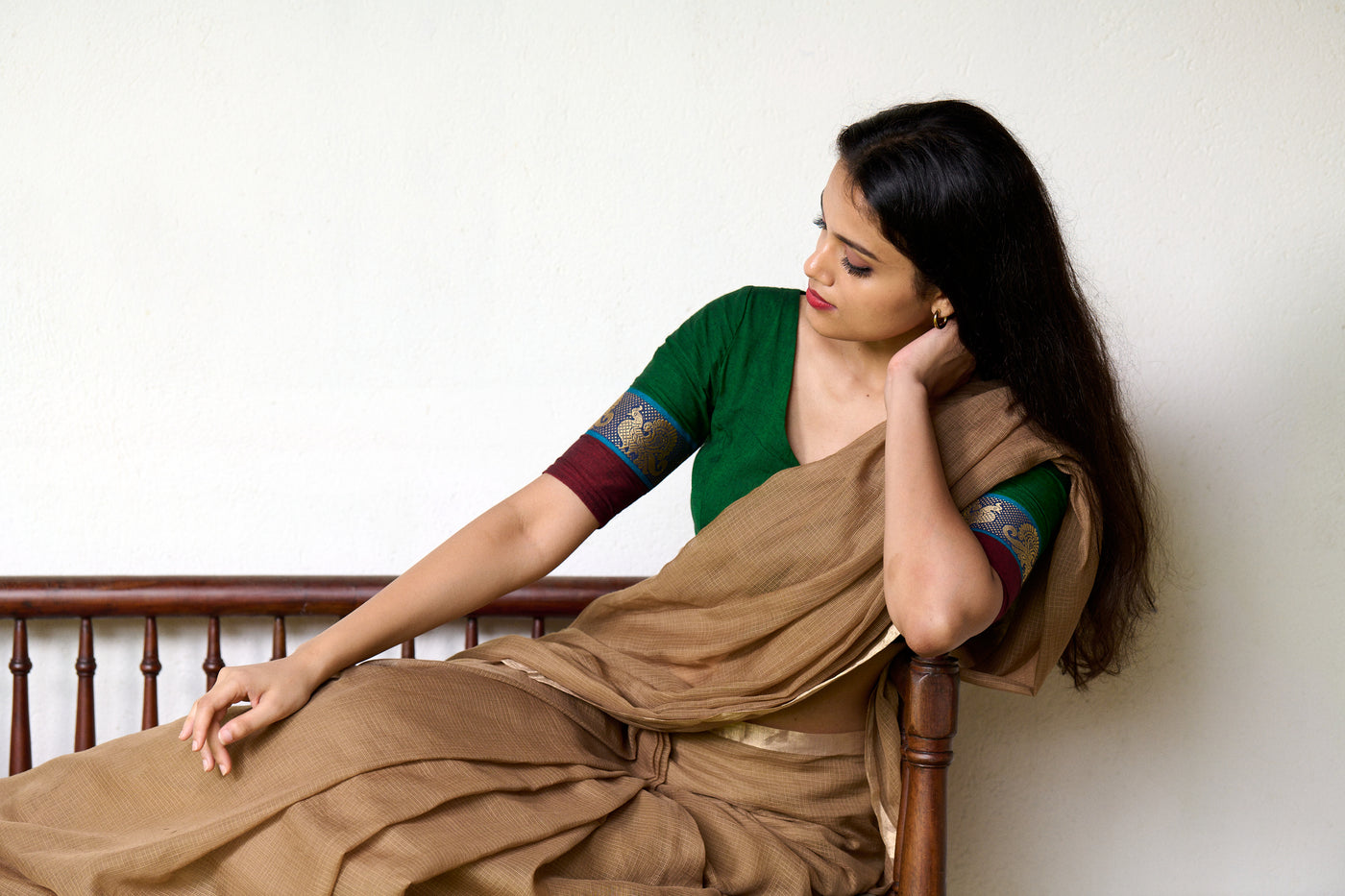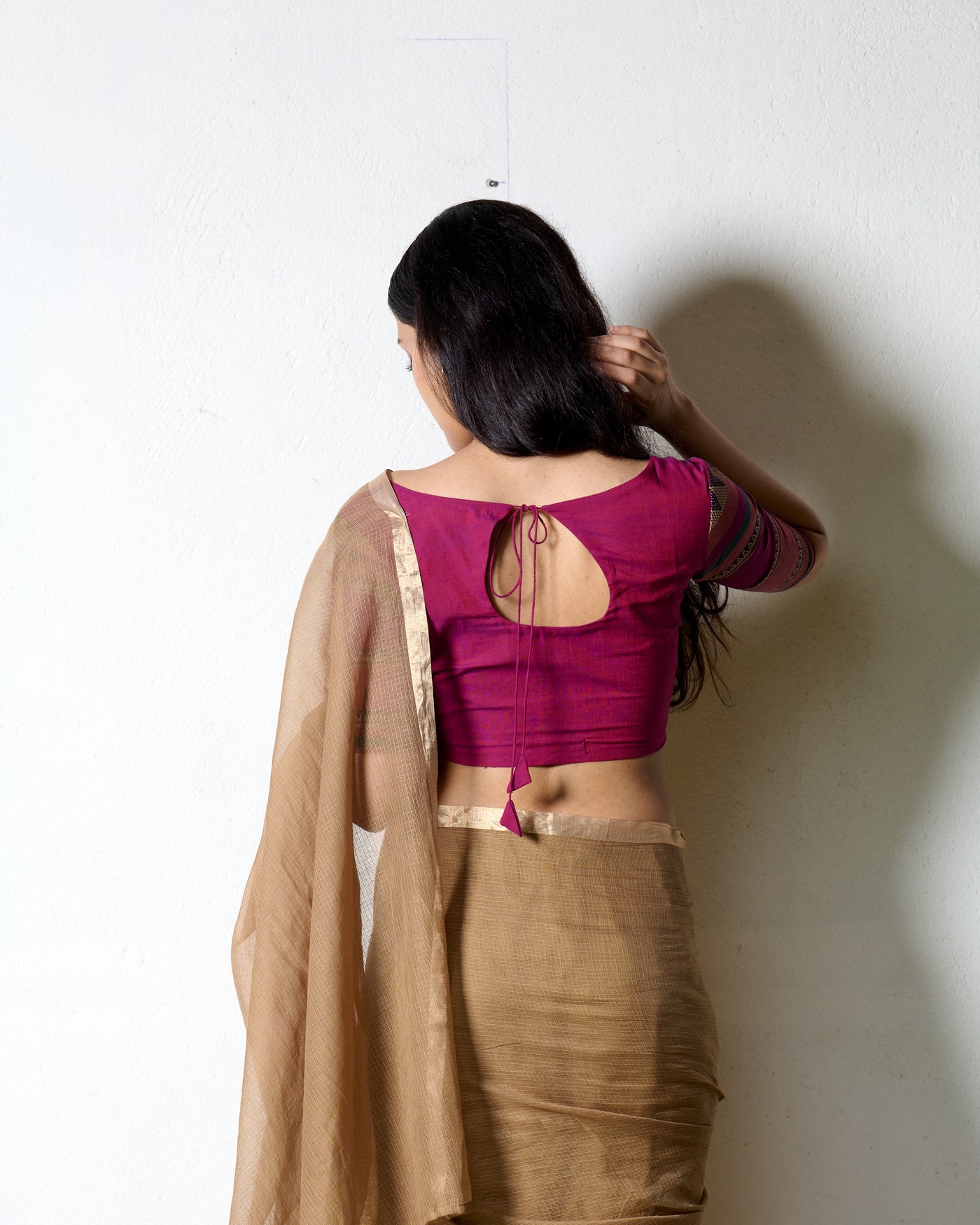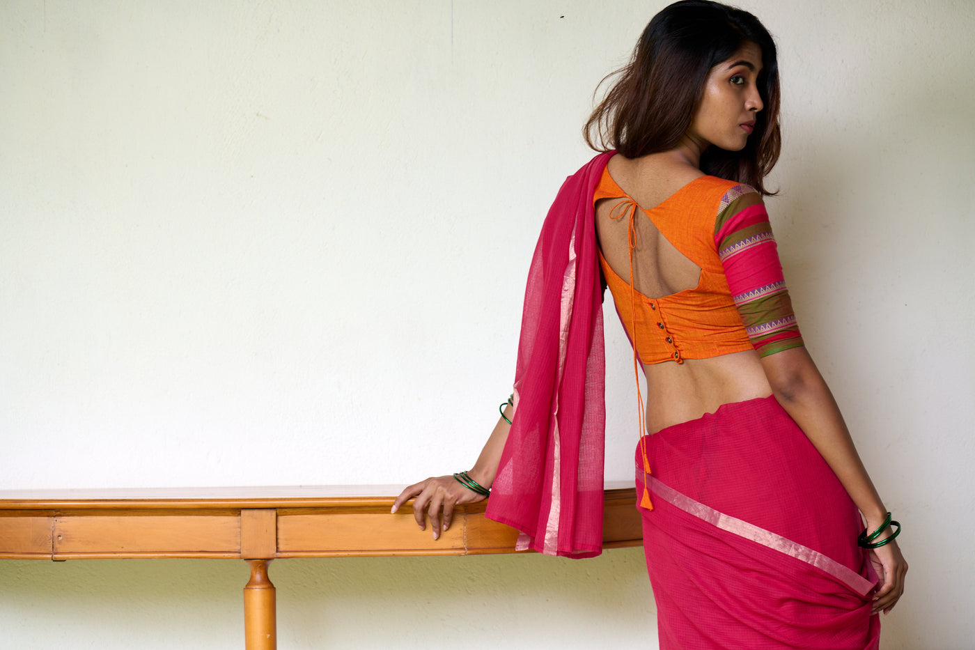 Our garments are a 100% local. Hand spun yarn, hand woven fabric so fresh off the loom you can feel the warmth of the wood. These are woven in tiny hamlets just a stones throw away from our studio by Rosie teacher, Sreedevi teacher, Premila, Nanda, Leela and many many more women. Our tailors cycle to work, one of them is a part time fisherman so he rows over. The rest of us foot it. And so this collection is a 100% village. Blouses made from textured hand woven fabric, crisp off white set mundu & sarees, but that’s not all; because we live with so much colour around us we’ve copied them all. You’ll see kingfisher blues, hibiscus reds, jamuni purples and jackfruit yellows.