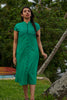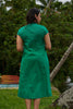 Pure cotton aqua green zari button-down dress with fallen shoulder