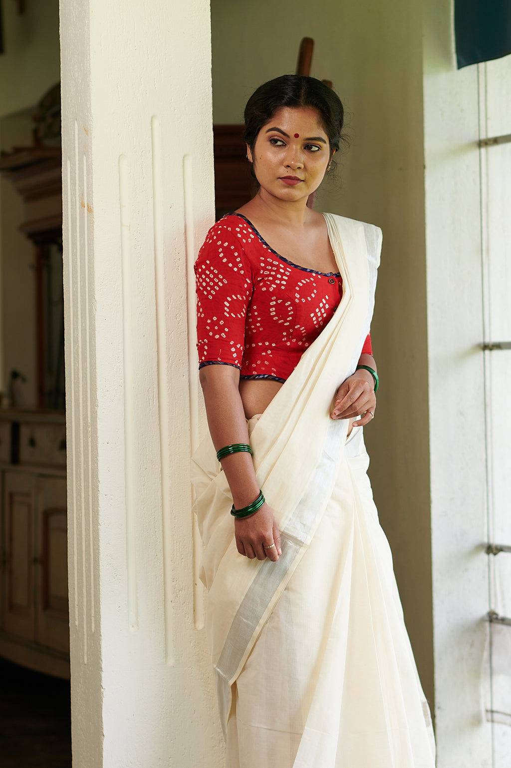 Rajasthani choli inspired bandhej blouse with  piping detail