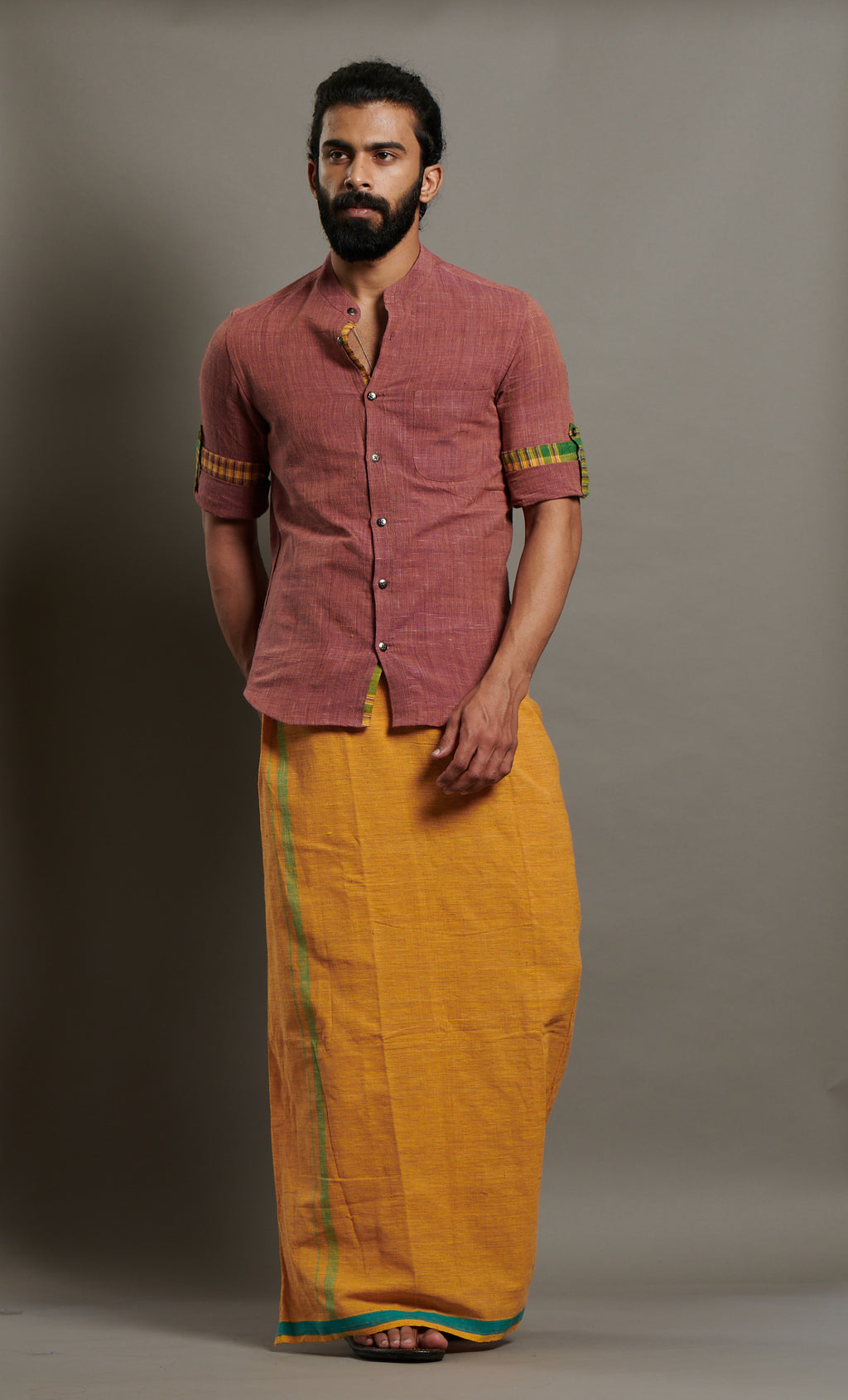This hand spun, hand woven lungi gets better with every wash. Starch it stiff if you want to go formal else swag it just the way it is