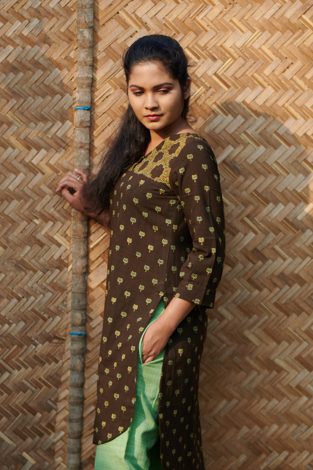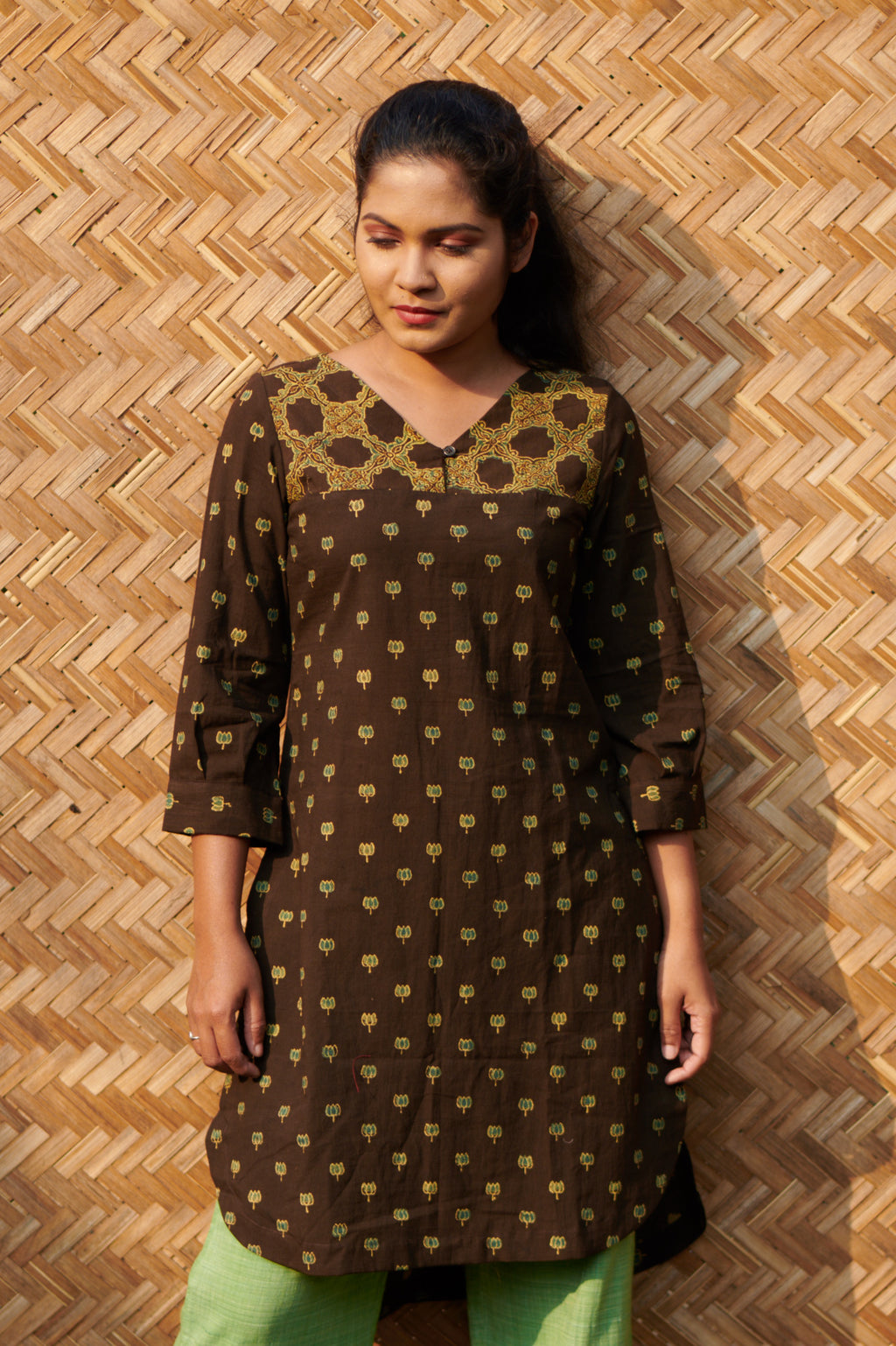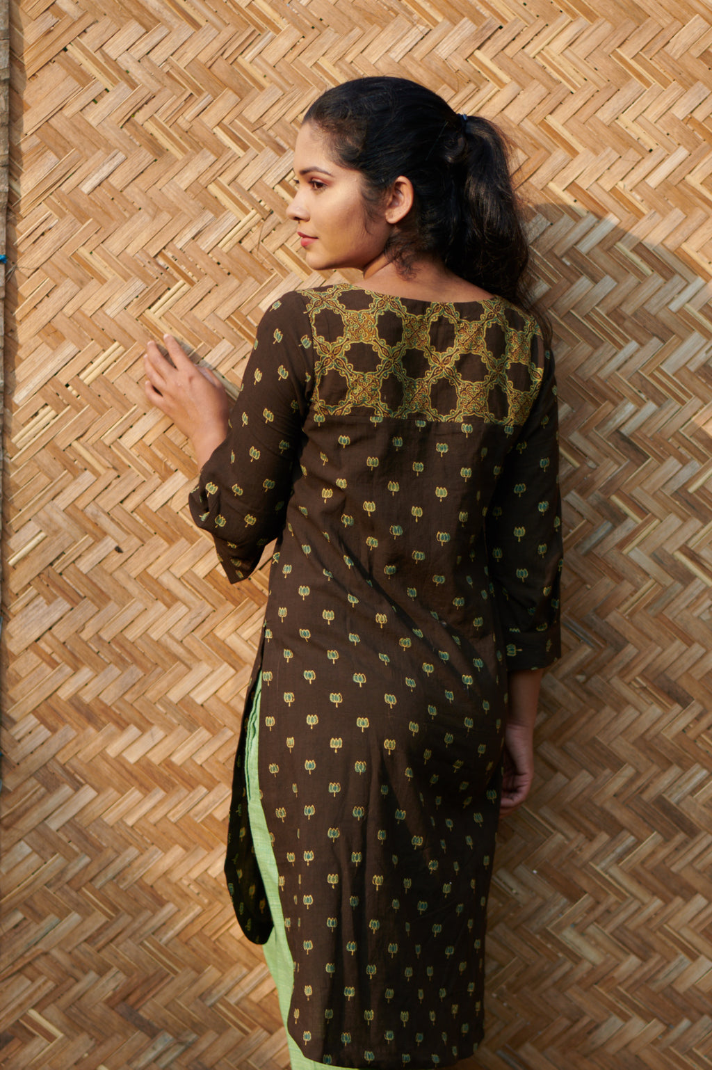 Hand block printed coffee brown , vegetable dyed Jubba kurta